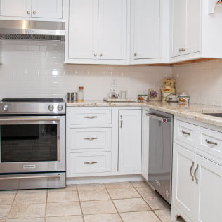 Designing a kitchen typically takes three weeks, from initial measuring to an approved plan. Remodeling generally takes one month from demolition to completion, and we work to expedite the process at every step. For example, we don’t start working until your cabinet order has arrived.